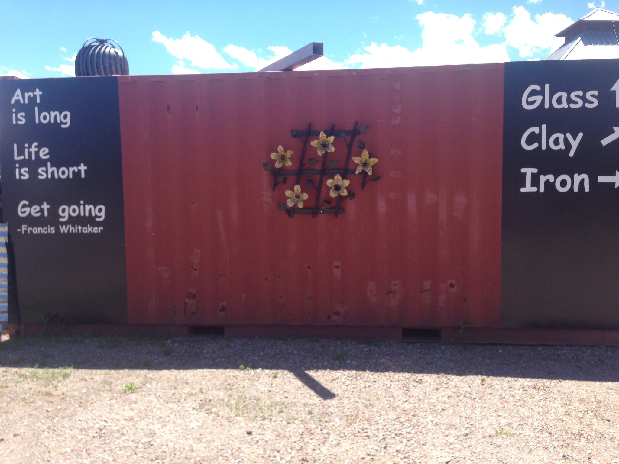 The school looks like a college campus in an heavenly bucolic setting. There are several buildings hosting different departments. Subjects include all the regular courses you will find in any other American high school, English, History, Geography, Math, Biology. And creative arts. We pass the theatre ( the school produces plays and musicals), the orchestra hall, the jewelry lab, the glass blowing lab, the iron and clay lab. A writing on the wall reads : Art is long. life is short. Get going. A quotation by Francis Whitaker, a famous American blacksmith. Art is something your work on with your hands at Colorado Rocky Mountain School. At this point, just by walking and listening to V., three things are clear and, I love all three of them: the relationship of alliance between students and teachers; the attention to trade learning and, the invitation to know, respect and benefit from the environment.